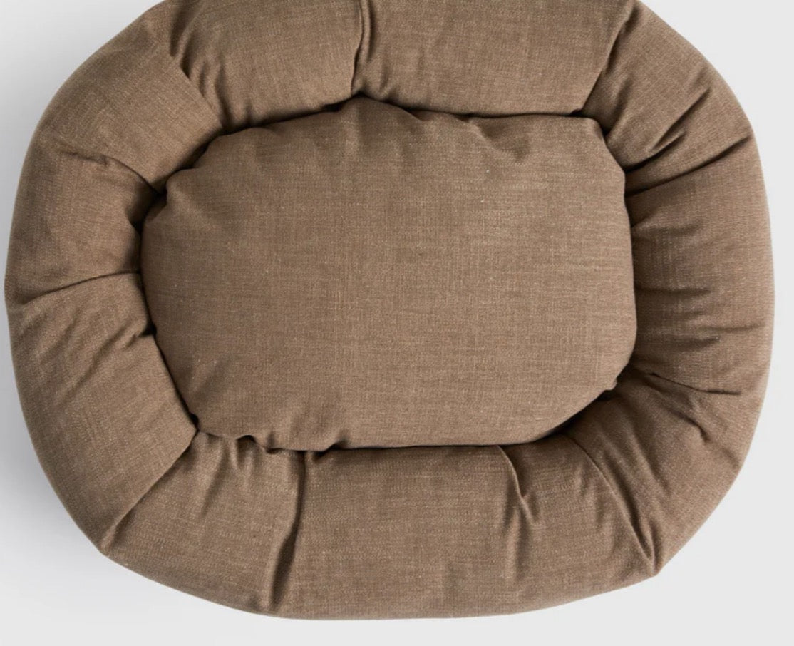 Crafted with a premium upholstery-grade fabric, the Warby Beige Donut Bed is as durable as it is beautiful. The linen-blend texture offers a soft, breathable surface that stays cool in warmer months and cozy in cooler ones. Stain-resistant and easy to clean, this fabric is perfect for everyday use and stands up to repeated washes—giving dog owners peace of mind and pets a plush place to rest.