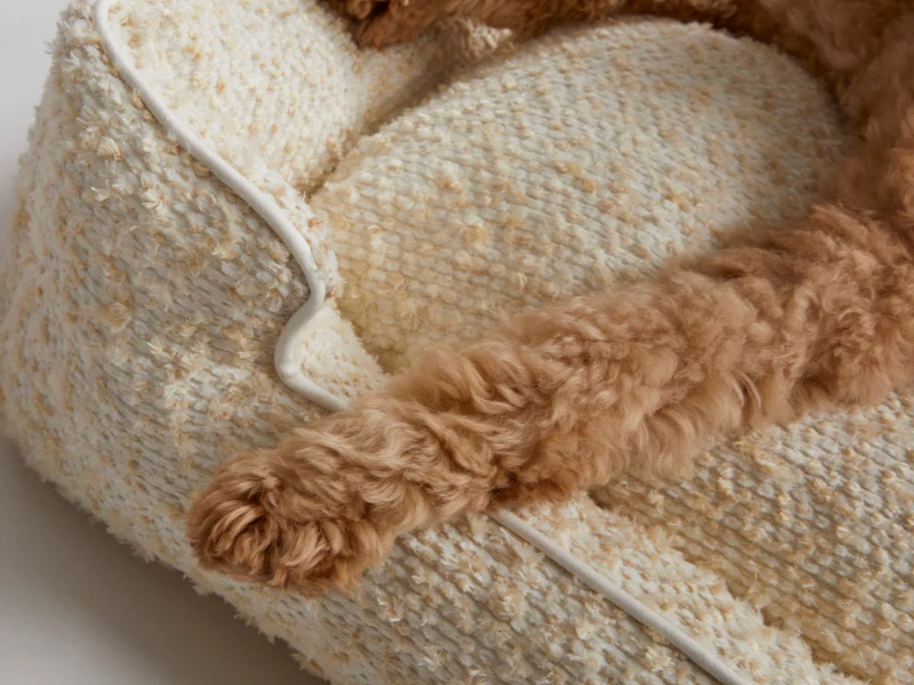 The modern white-beige hue of the Lolly Bed adds a bold, playful pop to any room while delivering the premium comfort dogs deserve.