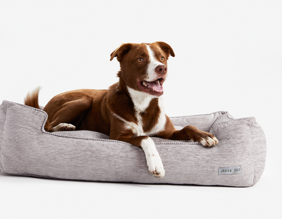 Jax & Bones Ridges Lounge Bed is designed like a sofa with bolstered sides. The bed is perfect for dogs who like to curl up or stretch while chilling out. The corduroy hides dirt and hair. And the fill is eco-friendly and hypoallergenic.