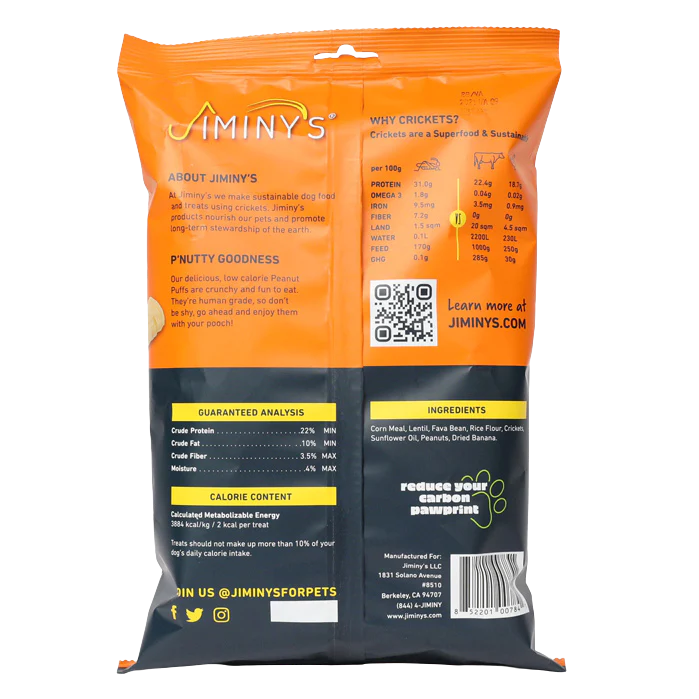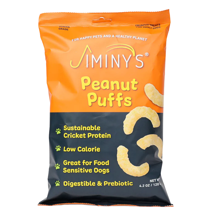 Jiminy’s Peanut Puffs are an exciting new form with a mouth feel that dogs love – crunchy yet melts in the mouth! These delicious puffs are made with simple, recognizable ingredients including crickets for a protein boost!